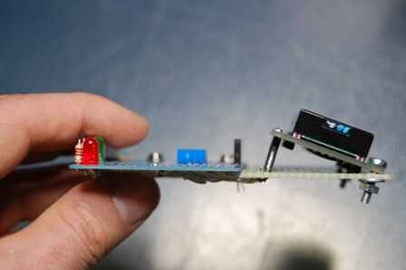 Si nos fijamos en la foto primera y la tercera deben recortar una placa que nos servirá bien como apoyo para la pantalla y como un "puente" de conexión a los pines de Arduino.