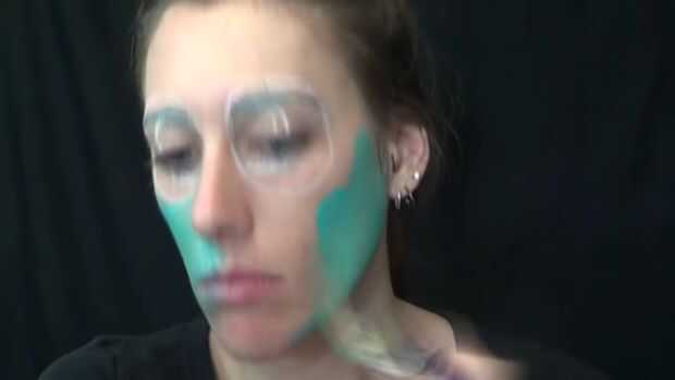 Luego tomar este metálico azul cubre su cara dejando el lugar donde los ojos se van claro.