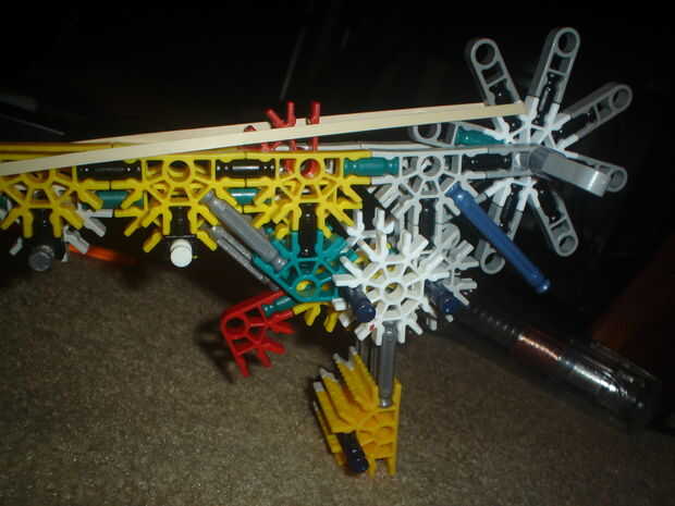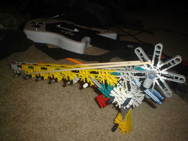 esta es mi arma favorita de K'nex construido por la propia. es una foto única pero puede ser muy potente dependiendo de cuántas gomas le agregue es el mecanismo de disparo. Me gusta porque hace buen uso de piezas de flex. Trabajar la pistola tirando