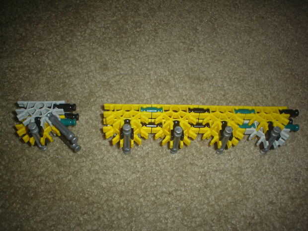 esta pequeña pistola K'nex es muy simple y utiliza solo 12 piezas (no incluye munición o una vista). No utiliza una banda elástica o bien.Paso 1: partes Arma:4 barras azul2 barras amarillas1 barra blanco2 conectores verdes1 conector amarillo3 conecto
