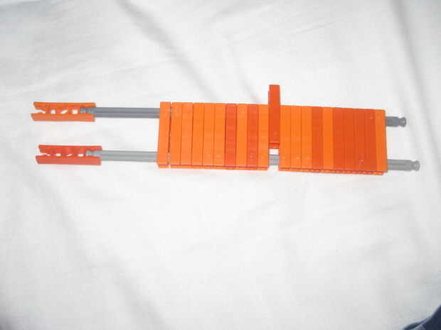 esta es un arma de KVG que usted puede hacer si no tienes muchas piezasPaso 1: Reunir las piezas para hacer el arma que vas a necesitarmango2 conectores verdes2 barras verdesbarra azul 14 conectores de púrpuraCañón3 barras rojas2 barras amarillas2 ba