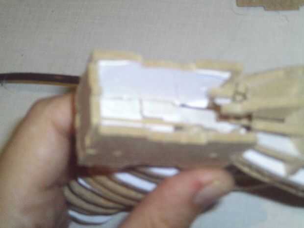Llegar a montar la parte trasera de la pistola de rayos, donde se establecerá gancho del disparador en la banda de goma, que también actuará como soporte de la tapa trasera, sí, la tapa trasera tiene que parte donde uno termina la banda de goma se establece, el otro en gancho del disparador.