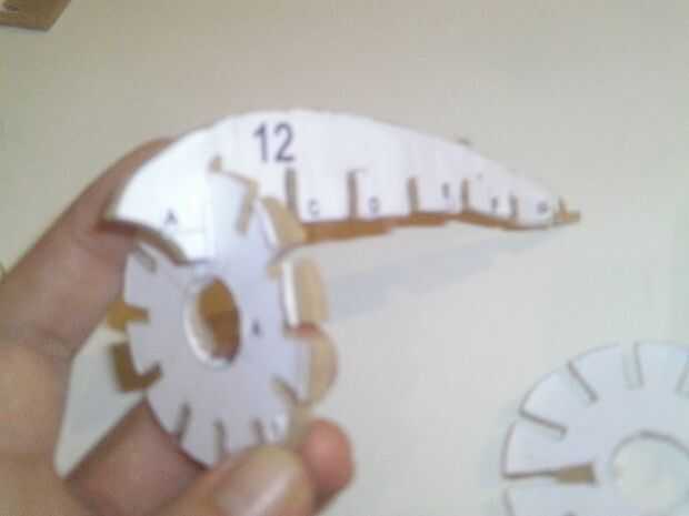 La pieza superior, es la parte 12, porque las partes laterales están dispuestas como las horas en la cara de un reloj, 1 a 12. Conéctelo a la parte delantera de la ronda, los arreglan desde A F, de delante hacia atrás. Iniciar, entonces, mediante la conexión de parte A parte 12.