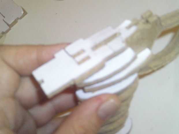 Esta parte está conectada en la parte superior del mango, pero recuerde, las 2 ranuras detrás del mango encajan en los agujeros traseros 2 de ese pequeño rascal y, ha significado para la parte delantera, detrás de 2 pares de la palanca de ranuras frontales.