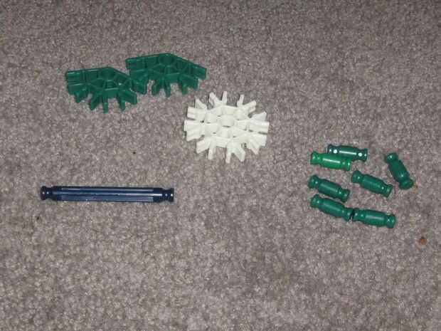 este es mi k'nex goma pistola que puede disparar hasta 7 bandas de goma a la vez. Es realmente sencillo de construir y utilizar. Si tienes k'nex y cortarla se puede construir. Espero que les guste.Paso 1: Recoger los pedazos Recoger: clave: conectore