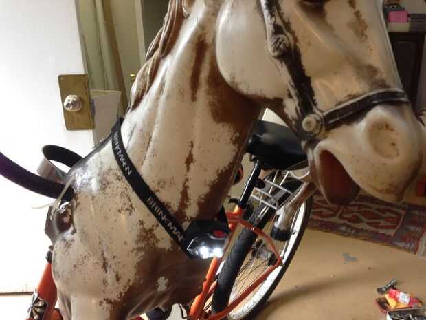 Lugar un proyector al cuello de su caballo para el uso como una linterna de la bici. La seguridad es importante!