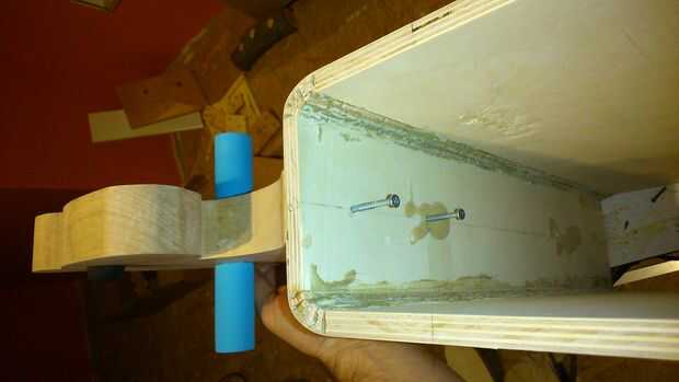 1. Después de que la pintura haya secado completamente y estás satisfecho, empezar a pegar la tapas delantera y las cola. Usé clavos para mantener todo en su lugar.