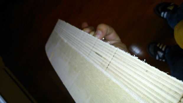 - Cortar 4 piezas de 8 x 32" pedazo de la madera contrachapada de 1/2 pulgada Báltico. Le pegue 2 eje de balancín para construir un eje de balancín en una etapa posterior. Podría tener sólo uso 2 piezas de 1" multilaminada de abedul báltica pero entonces tendría que comprar una hoja de 1". Pegamento nose el 2 del eje de balancín PC todavía. Necesitamos hacer primero alinee los orificios del cuerpo.