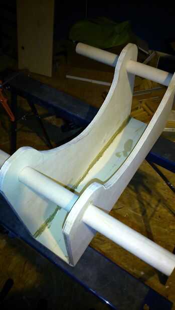 9. Para llegar desde un ángulo grados 60 a una curva de 90 grados completo, utilicé una cuerda y ató a la parte inferior del caballo de la sierra y a través del agujero del pasador. Apretó un poco a la vez mientras los cortes de planchado. Utiliza algunas cuñas así.