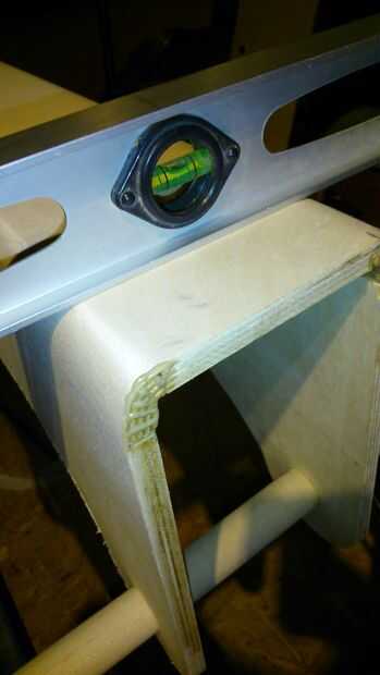 11. Una vez que se realizaron ambos lados, desabrochó la cuerda fijados al cuerpo del caballo de la sierra y impulsó las clavijas para asegurarse de que los agujeros estaban alineados. Utilice el indicador de nivel para asegurarse de que su bien nivelado. Ver fotos