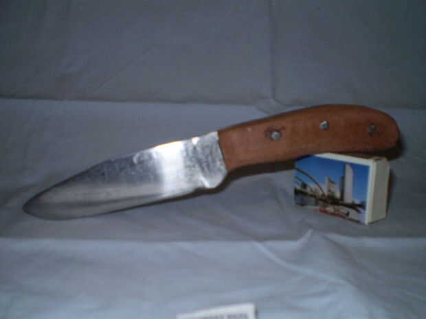 Este es mi primer cuchillo, hice de una sierra circular. Hizo hoy con la ayuda de mis papás, en su mayoría a corta la forma básica. Derecho después de lijar todo el asunto por lo que era liso sedoso (así fue, tan suave!) Entonces presentada por la pa