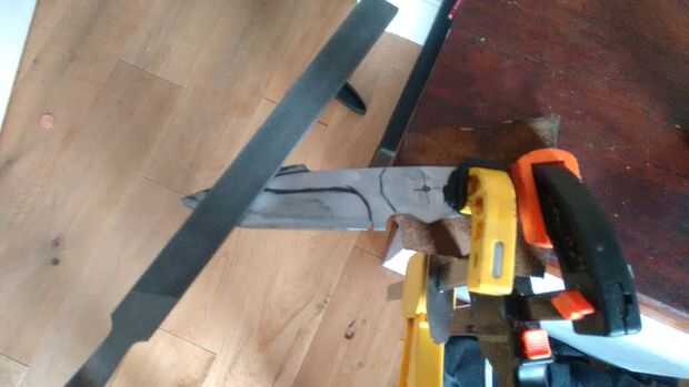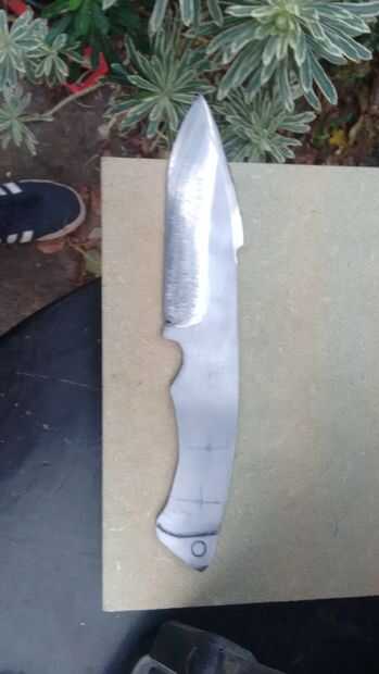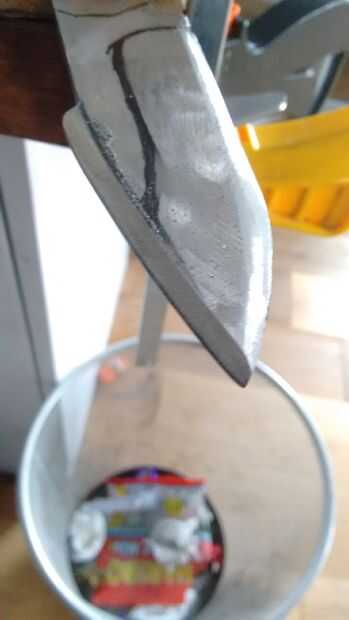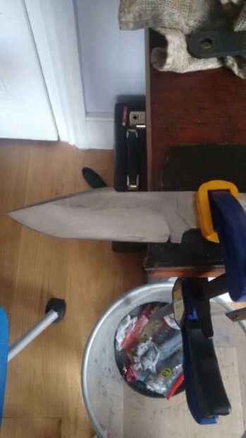 Si tienes una amoladora de banco o una lijadora de banda, seguir adelante y utilizarlo, usted probablemente obtendrá mejores resultados, pero yo no así que tuve que hacer. También tenga cuidado de no conseguir la hoja demasiado caliente que aparecen los colores del Temple, a inmersión en agua de vez en cuando, usted se sorprenderá cuán rápido el borde fino calienta con la fricción.