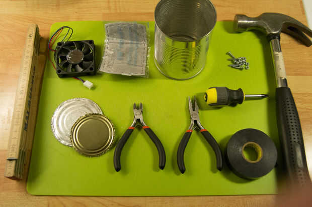 • Tin dos latas por lo menos uno que cabría el ventilador.