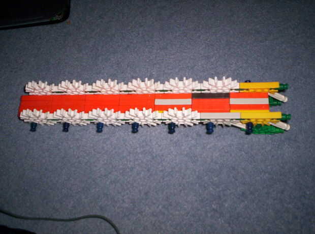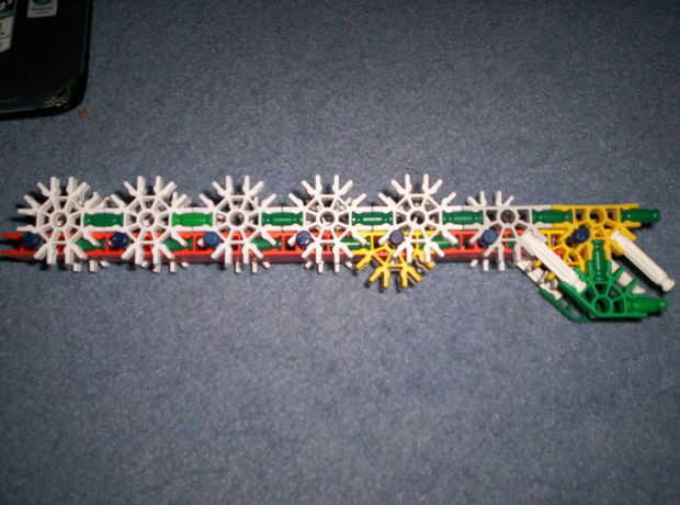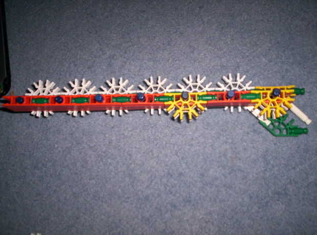 este francotirador dispara varillas gris con rojo conectores Unidos. It´s un francotirador muy potente. sus brotes a través de una caja de zapatos. habían hecho mi hermano y yo.