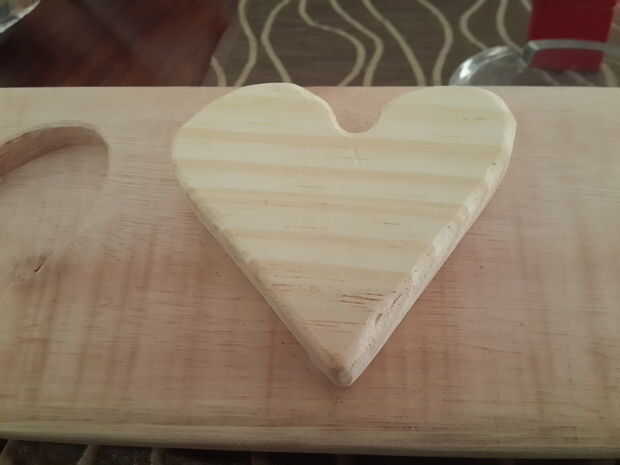 La forma y el corazón usando 80 cuadrícula y luego 120 red de arena lija con la lijadora.