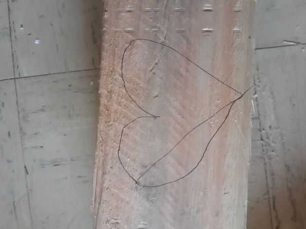 Dibujar la forma del corazón en la pieza de madera con un lápiz. Asegúrese de que el tamaño y la forma que dibujaras caben en la pieza principal de la madera. No se estrese demasiado si su dibujo se ve un poco... sabes. Fácilmente fijable al cortar o lijar.