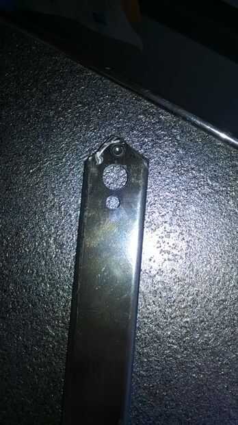 cabeza fuera, enchufe el Dremmel/Drimmel en la red, encender hasta 4, instale un cabezal de corte, luego sacar el primer nivel de la corredera. comenzar cortando a lo largo de la parte superior de la línea. a continuación, corte la parte superior en forma de hoja. una vez que hayas hecho esto, corte la punta de la cuchilla ya no quiero ser responsable ya que hay algunos que lo usara para matar.