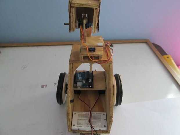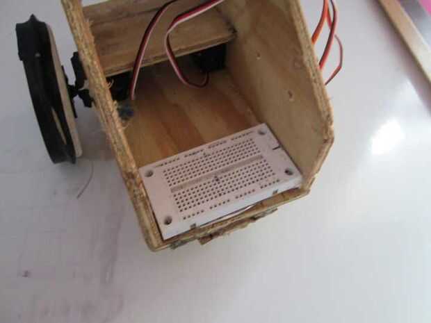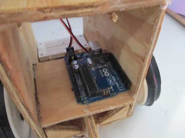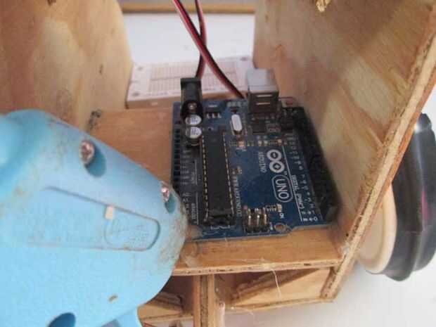 Aplique pegamento en los orificios de montaje para asegurar el control de Arduino en el cuerpo del robot.