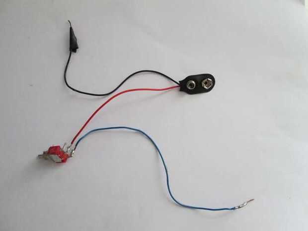 Nota: No olvide el interruptor hacia el lado positivo del cable que viene de los Clips de batería de 9V y no el lado negativo de las pinzas de la soldadura.