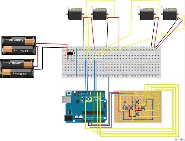 Montar los conectores de servo en el tablero de pan siguiendo el esquema (cuadro 3).