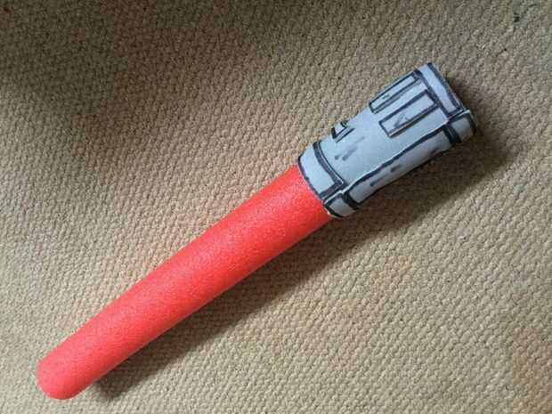 Esto me puso a pensar de hacer un sable de luz rápido y sencillo para él que no lastimaría a nadie, nada o lo más importante es él mismo