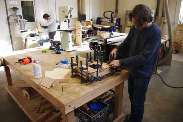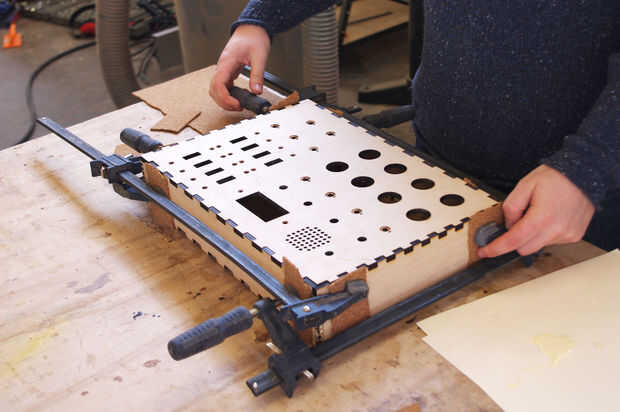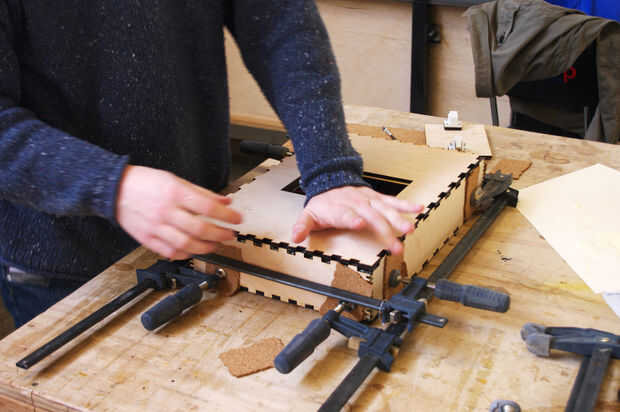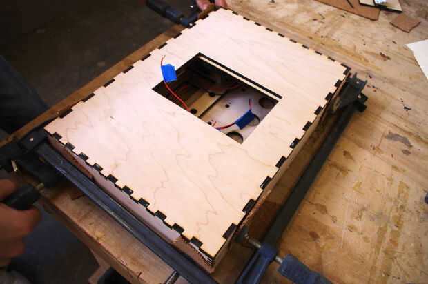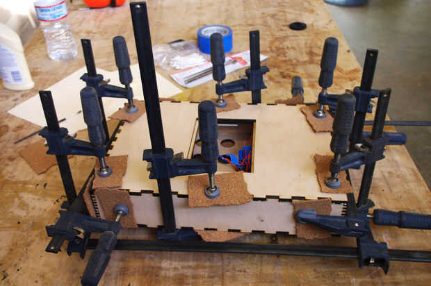 Sujeta todos los lados con muchos - muchos - bar las abrazaderas, para aplicar un uniforme presión sobre todas las superficies (lo mejor que pude).