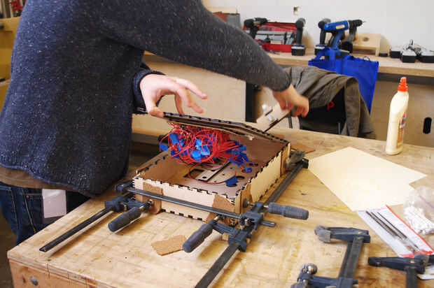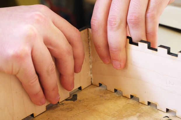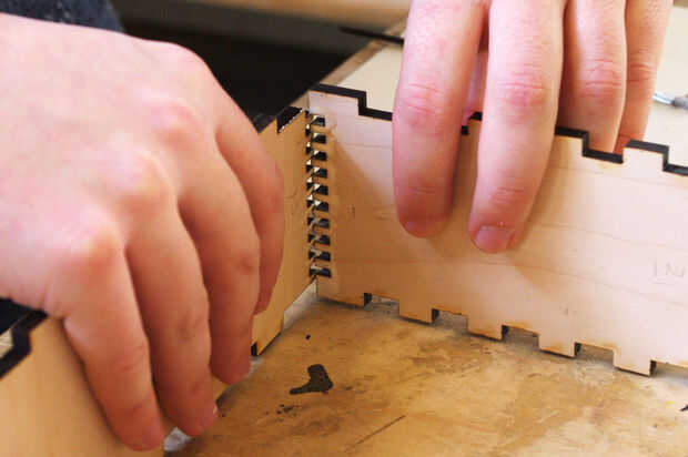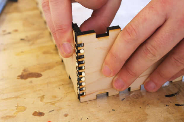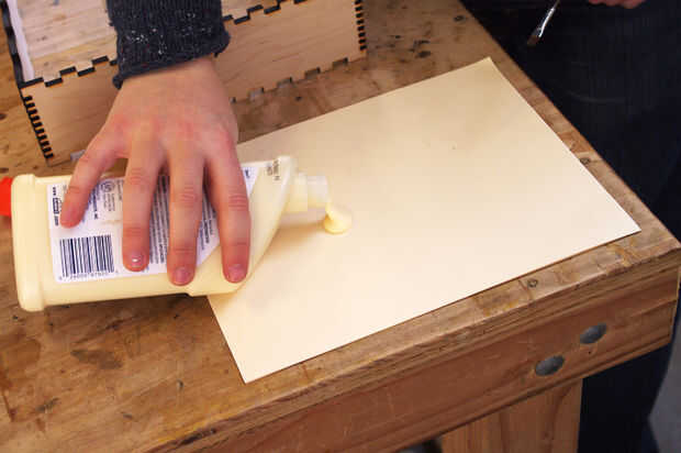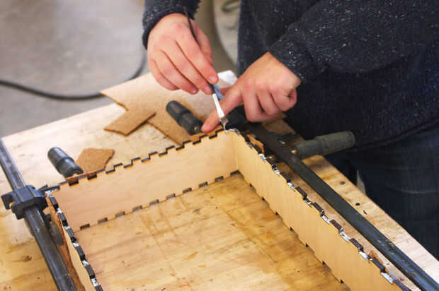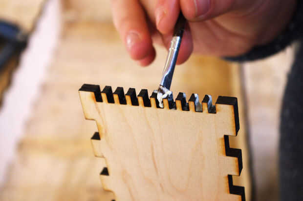 Comencé pegando dos lados de la caja Junta, cuidando de extender pegamento fino con un pincel en ambas superficies que fueron reuniendo.