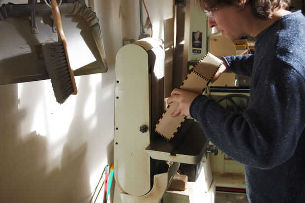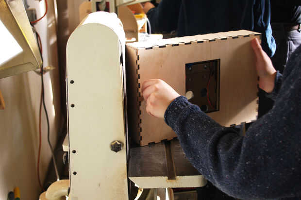 Básicamente, doblé cuidadosamente todos los bordes de la caja usando una lijadora de banda.