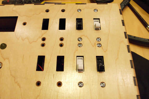 Una vez que los potenciómetros eran todo firmemente en su lugar, he instalado los cuatro interruptores restantes.