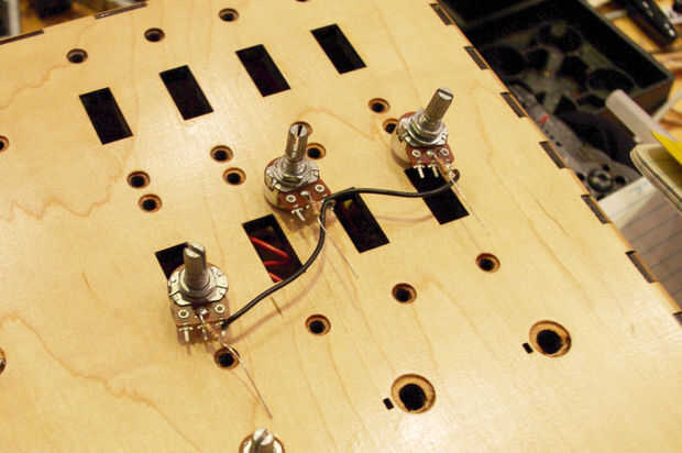 A continuación cableado y había instalado los potenciómetros restantes a partir de la parte inferior derecha.