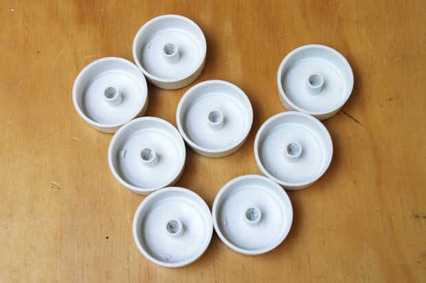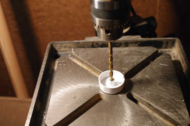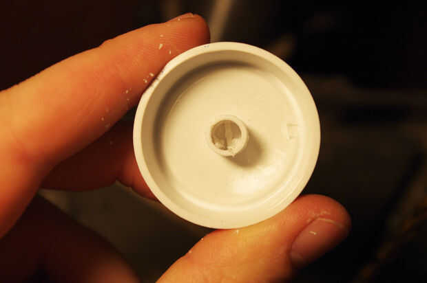 Para solucionar esto, perfore los agujeros de los botones con una 1/4 broca. Tenga cuidado de no perforar completamente la perilla. El objetivo aquí es ahuecar el agujero de montaje.