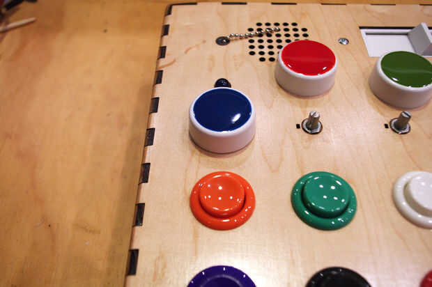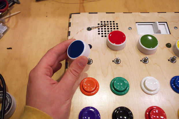 Coloque los botones de colores en los potenciómetros del sintetizador como su see fit.