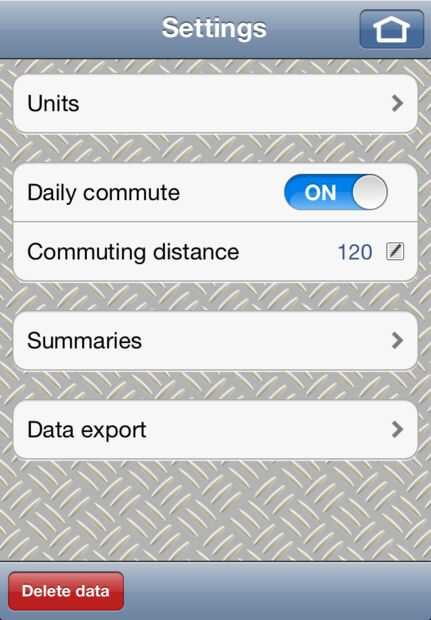 - En la configuración del UIView, hay unidades unidades de EE. Puede establecer el valor diario del viaje y también se pueden definir las preferencias para la visualización de sus datos en los resúmenes (por ejemplo, si desea ver sus datos agrupados mensualmente)