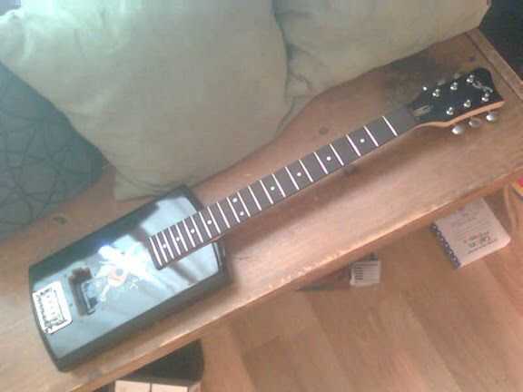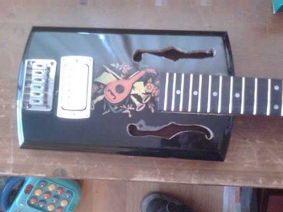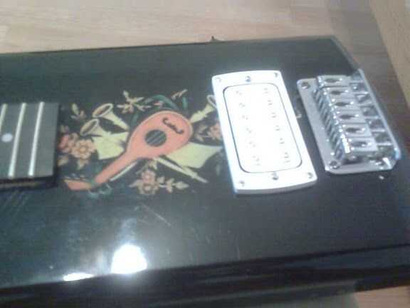 tuvo la idea de una guitarra de altoids y utilizado algunas partes tenía por ahí. Lanzó un humbucker en una caja de la lata en lugar de piezoeléctrico un poco y se fue de 6 cuerdas en vez de 2 o 3.Aún no terminado, pero ella hace ruido :) Necesito do
