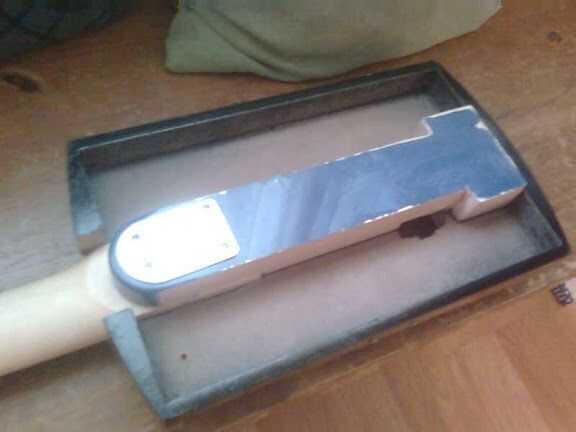 Para alinear el cuello con la tapa de la caja y péguelo en el lugar.  Lo dejo reposar una hora aproximadamente mientras que tomé un descanso para almorzar.  Después del almuerzo fui adelante y había instalado la camioneta.  También he notado que la guitarra tenía un alambre que se sentó desnudo debajo del puente y conectado a los motivos en las macetas.  Supongo es para protección de ruido y sin embargo me encontré que los cables así.  Entonces decidí probar mi suerte con corte f-agujeros.  Como dije, espero que tus habilidades de carpintería son mejores que los míos.