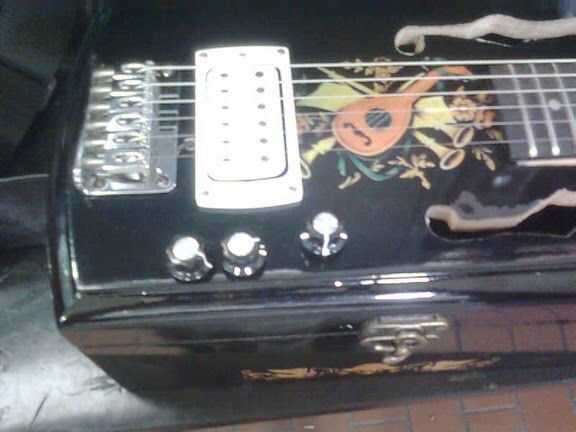 Luego los orificios perforados y había conectado mi perillas de volumen y tono.