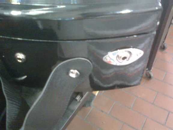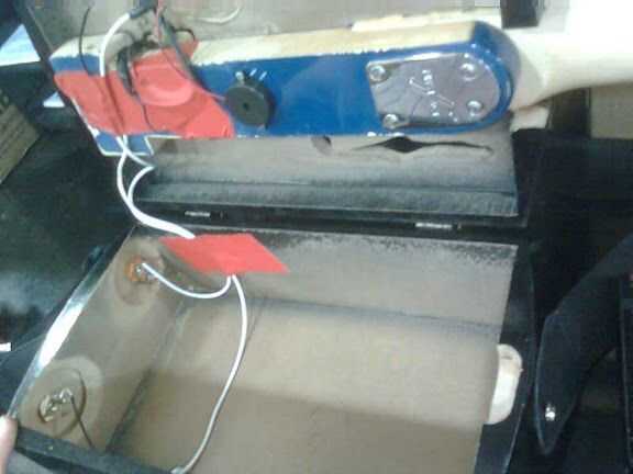 Luego los orificios perforados de 1 Amp y Amp 2. El agujero para amp 1 tuvo que perforar más grande para que yo pudiera hacer uso del bisel de la vieja guitarra.