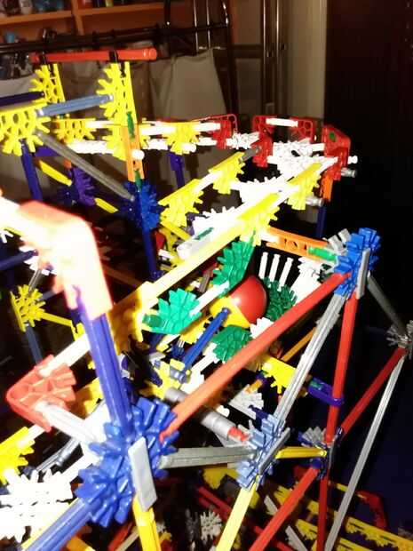 Luego rueda hacia un camino alrededor de la parte posterior que conduce a salto ascensor de Sandroknexmaster, que lanza la bola en Martijnb95 'La mitad tubo cosita'. Finalmente, termina en la elevación de la cadena en el centro!