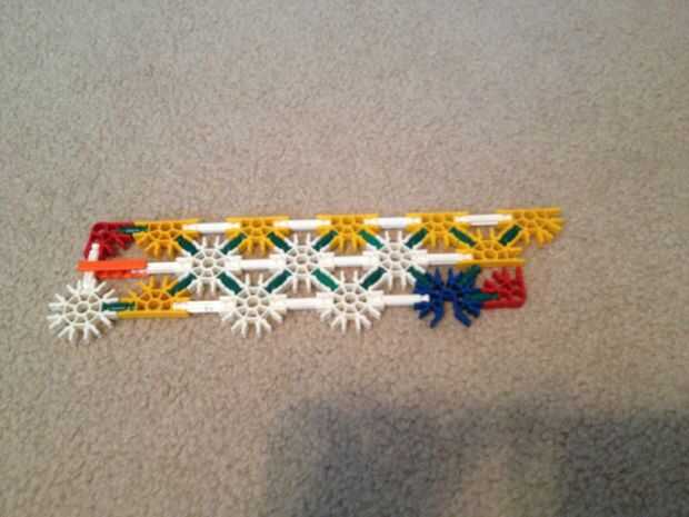 esta es un arma de KVG que usted puede hacer si no tienes muchas piezasPaso 1: Reunir las piezas para hacer el arma que vas a necesitarmango2 conectores verdes2 barras verdesbarra azul 14 conectores de púrpuraCañón3 barras rojas2 barras amarillas2 ba