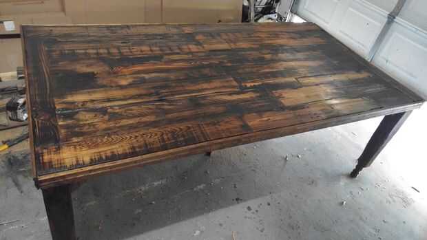 compré esta mesa de comedor ladyish anticuado, viejo y Presidente conjunto de $25 en Craigslist. Viendo que era de madera maciza, sabía que sería fácil de arreglar las manchas y arañazos con un poco de jabón y agua y un papel de lija.Paso 1: Después
