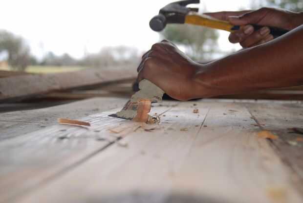 -Arena toda la superficie 2 - 3 veces con el grado más dura de papel de lija tiene y luego una vez con un grado más fino hasta que la madera es suave y tiene un final que te gusta. Reforzar las tablas con un tornillo de 1/2 pulgada en las cuatro esquinas de los tableros que usted piensa que necesita. No hacerlo con todos los consejos pero hago con uno que no tengo un super ajuste apretado entre sus tablas circundantes.