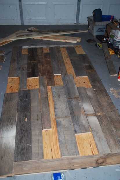 -En lo alto de una pieza de do de 7 pies x 3 pies de madera contrachapada un trabajo pequeño rompecabezas para obtener las tablas para adaptarse. Usé una sierra circular para acortar piezas para encajar y compradas piezas de tablero para complementar los espacios que no tengo madera para encajar.