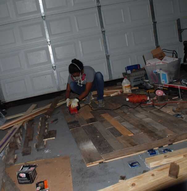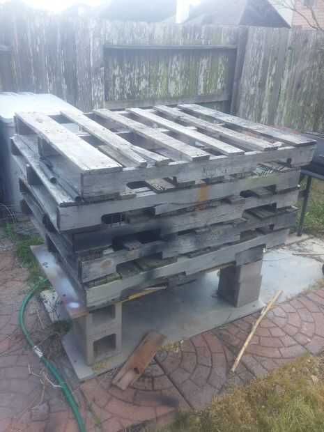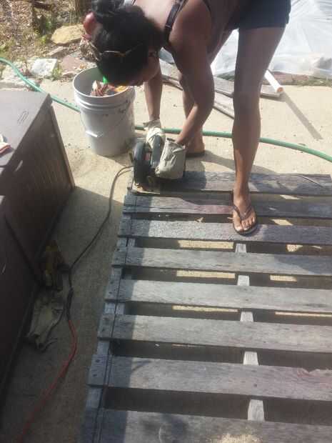 sobre pallets de madera de 8-10 y quitar las uñas de todos los tableros, en retrospectiva probablemente no una buena idea usar flip flops durante el uso de herramientas eléctricas, no recomiendo.