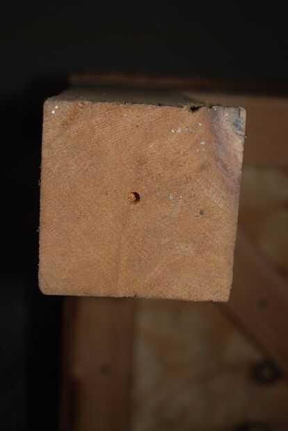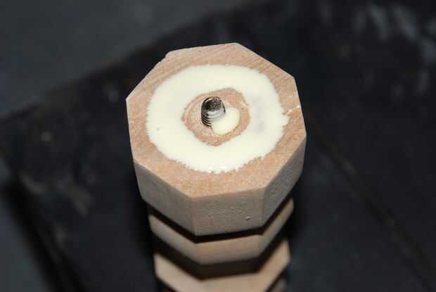 -Añadir un poco de pegamento de madera y la pierna del tornillo en los agujeros taladrados.