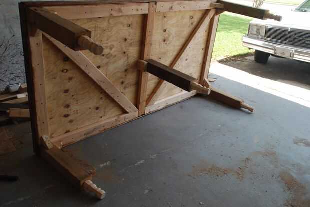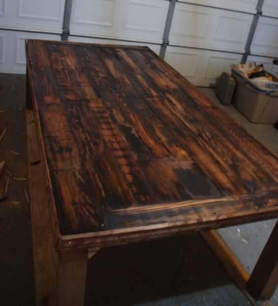 -Para una mesa estándar es 30" de altura, hice mis piernas al cortocircuito así que compré algunos tabla 5" pies en el hogar depot para sujetar a la parte inferior de mis piernas. Si tus patas de la mesa se cortan al tamaño correcto desde el principio puede omitir este paso si no te gusta sólo la apariencia. Después de que la mancha esté completamente seca (esperé dos días) Coloque la tabla de lado y taladre un orificio en la parte media de la parte inferior de cada pata.