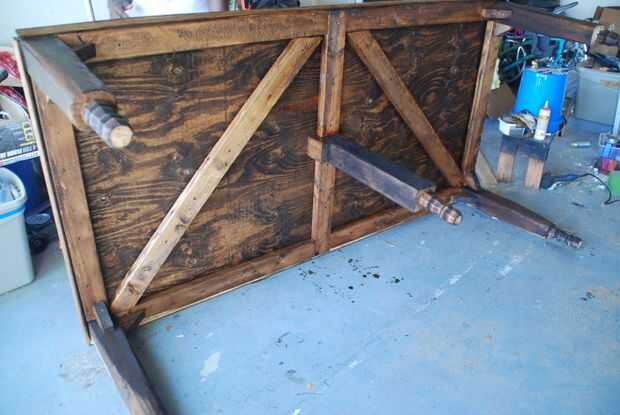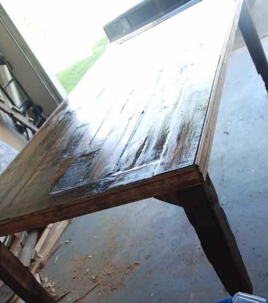 -Gire a la derecha de la tabla para arriba y terminar manchando las piernas. Cuando termines manchando las piernas aplicar una fina capa de poliuretano sobre la parte superior de la tabla.