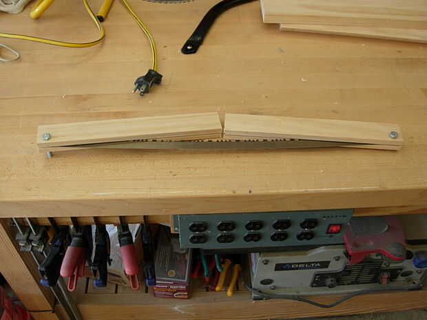 Cruz terminada siendo una pieza pieza he encontrado en el cubo de piezas que fue aproximadamente 3/8" de espesor y unos 1 1/2" de amplia. la sierra está alrededor de 21" de largo transversal es un corte áspero en 21", todo para estar bien sintonizado como vamos.