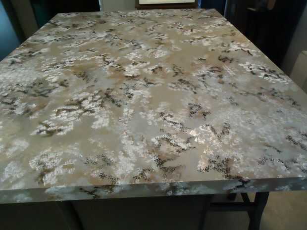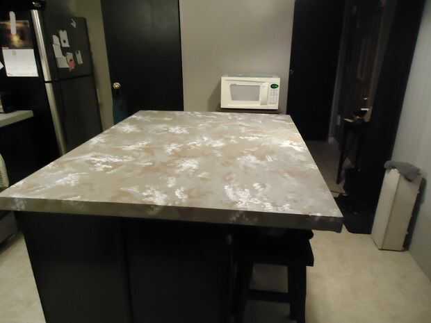 no se alarme en este punto el resultado es bastante feo, como estoy seguro que ustedes estarán de acuerdo, pero tengo confianza en puedo trabajar a través de él y terminan con una gran encimera, créeme, había un par de puntos donde comencé a preguntarme si yo podría tener que rodar la imprimación sobre toda la cosa y transmitir mi idea de un 'granito' encimera de la isla??