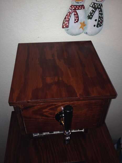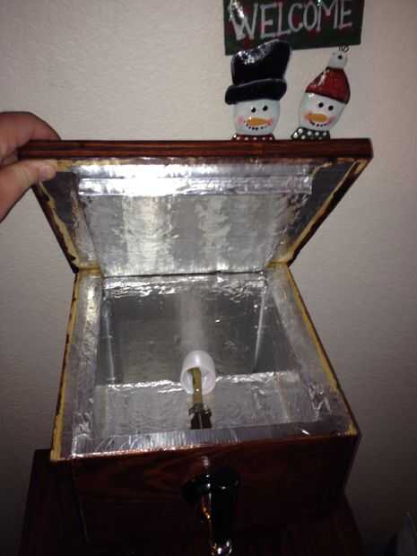 Moví dentro y conectado todas mis líneas. Giré en la nevera y esperar unos 3 dias antes de mi barrilete para asegurarse de que la nevera estaba sosteniendo a la temp. También construí un pequeño ventilador de un viejo ventilador de ordenador. Usé el ventilador empalmado con un enchufe de 12 v. Luego cortar un agujero en el fondo de un viejo recipiente de Tupperware y selló todo cerrado. Corte un orificio en la parte superior y poner un tubito de plástico en el agujero y selló. La manguera entonces se enrutó el agujero en la nevera y en la caja para hacer circular el aire frío de la nevera en la caja que hice. Salió muy bien y mantiene la línea de frío. Luego instala el tanque barril y c02 y otro esperado 24 horas para asegurarse de que el barril establecido. Tweeking justo un poco de la presión de c02 y era el momento de beber cerveza! Esperamos que hayan disfrutado mirando mi build!!!! ¡ Gracias!