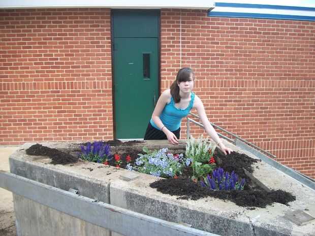 Este año, nos centramos totalmente en los jardines. Hay un jardín en particular, frente a la entrada a la escuela, que nosotros habíamos sido excavación cebollas silvestres y malezas de desde que empezó el club de Go Green en el 2009. Ahora que este era mi último año aquí, mi el año pasado como un ir de Greenie, reclamó este jardín para mi proyecto personal «adiós». Quería hacerla hermosa mostrar el orgullo que tenemos en nuestra escuela.